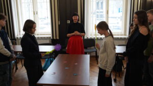 Kolejnym punktem programu były warsztaty przeprowadzone przez Joannę Przybyłowską, podczas których uczniowie szkół podstawowych i ponadpodstawowych zostali aktywnie zachęceni do praktycznego użycia języka niemieckiego.