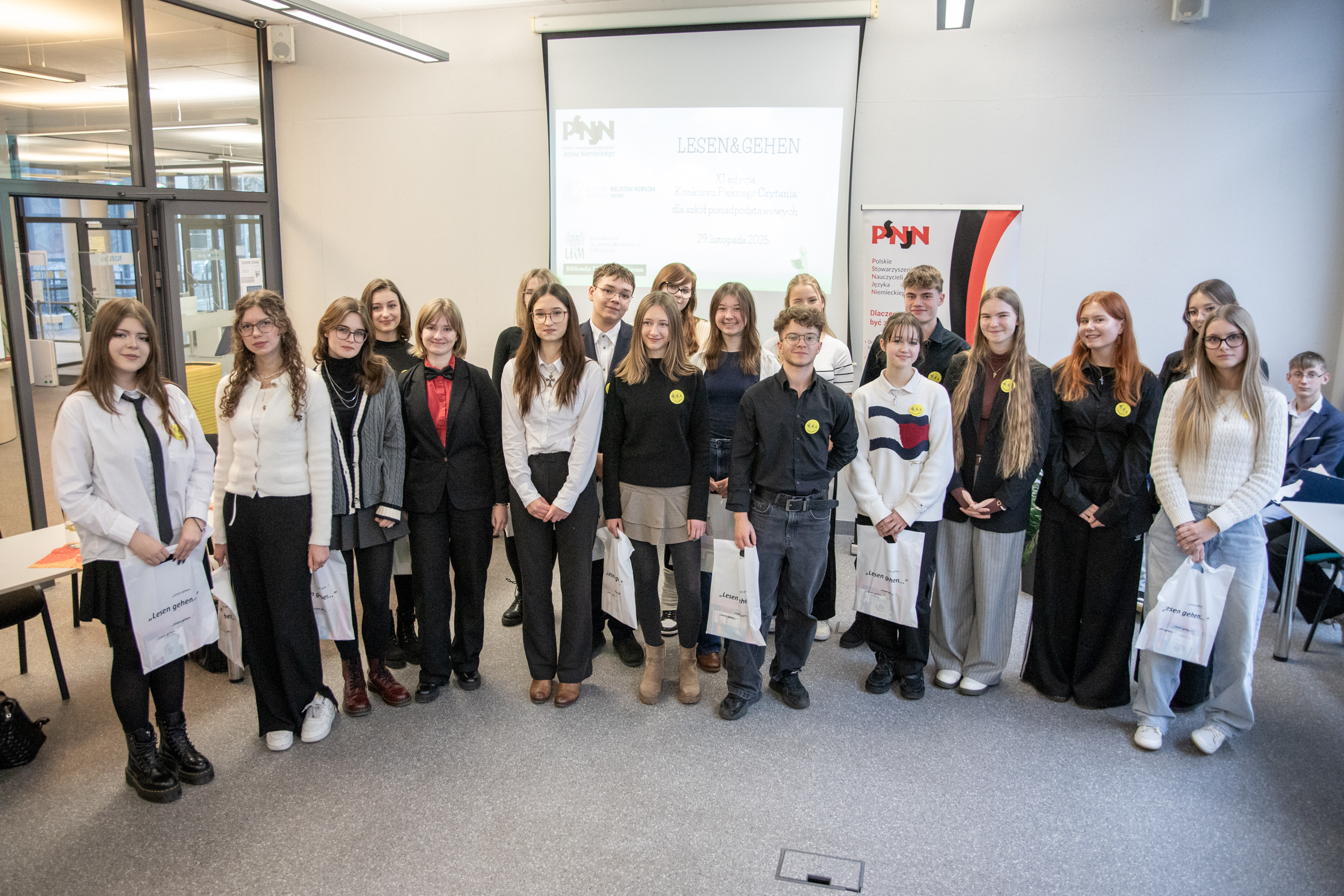 29 listopada 2025 roku w Bibliotece Filologicznej NOVUM UAM w Poznaniu odbył się finał XI edycji Konkursu Pięknego Czytania “Lesen gehen..” dla uczniów szkół ponadpodstawowych województwa wielkopolskiego i powiatu wałeckiego. Konkurs ten, organizowany przez Bibliotekę Filologiczną NOVUM oraz Polskie Stowarzyszenie Nauczycieli Języka Niemieckiego Oddział Poznań, cieszy się rosnącą popularnością i przyciąga wielu młodych entuzjastów literatury niemieckojęzycznej.